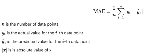 - Measures the average magnitude of errors in predictions
