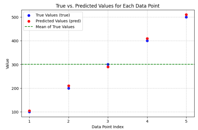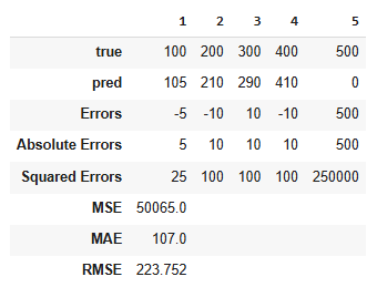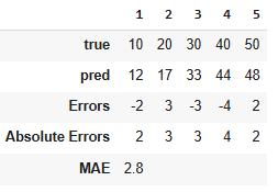 - MAE of 5 means, on average, predictions are off by 5 units from true values