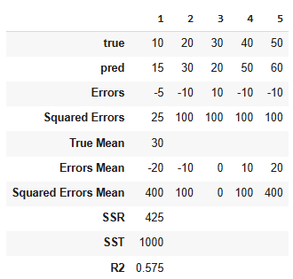 - Simple model predicting average of true values get R2 of 0