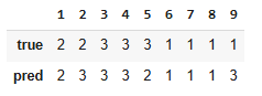 Tabular view how predictions align with true values (2x2 matrix)