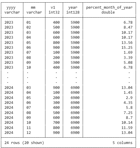 sum(v1) over (partition by yyyy) as year,