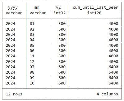 sum(v2) over (order by v2) as vv2
