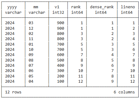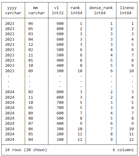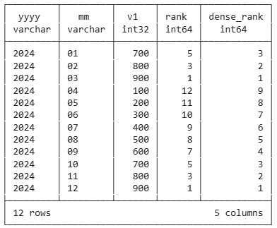 dense_rank() over (order by v1 desc) as dense_rank,