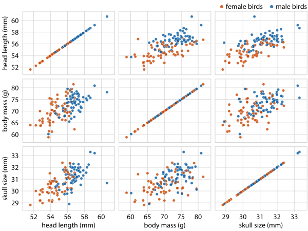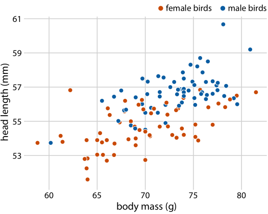 Additional visual clue via color: sex