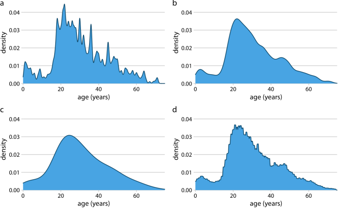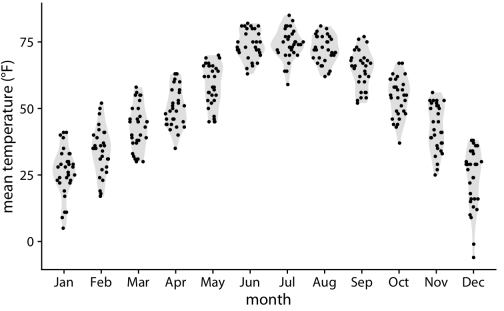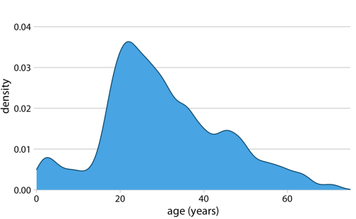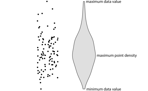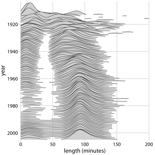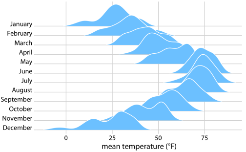 Ridgeline plots, half violin plots rotated by 90 degrees