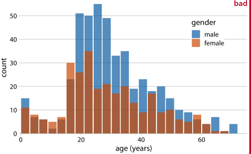 If bars are not stacked, with transparent bars, meaning of third color not clear